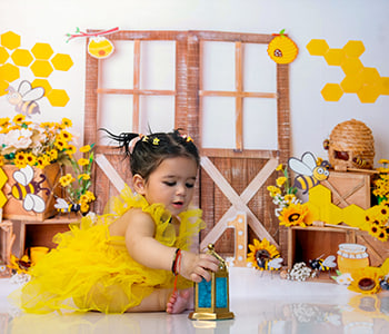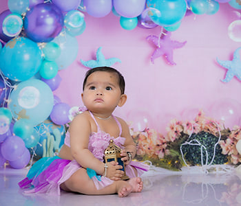Best Baby photoshoot studio experienced photographers create a comfortable and safe environment for your First Pre birthday shoot. We use gentle props, natural lighting, and a variety of backgrounds to enhance the beauty of your child.